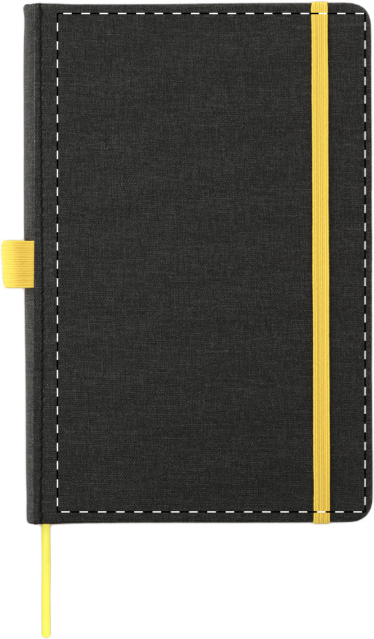 Getextureerd notitieboek met PU-leer, bijpassende bladwijzer, rubberen band en penhouder. 96 gevoerde vellen, A-5 formaat.