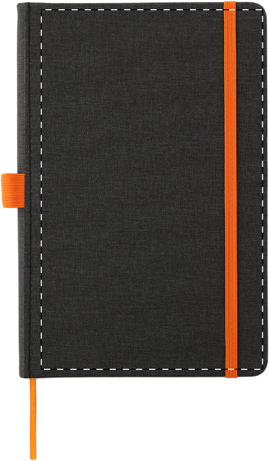 Getextureerd notitieboek met PU-leer, bijpassende bladwijzer, rubberen band en penhouder. 96 gevoerde vellen, A-5 formaat.