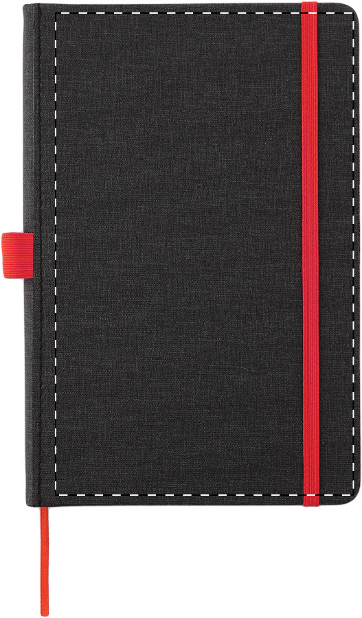 Getextureerd notitieboek met PU-leer, bijpassende bladwijzer, rubberen band en penhouder. 96 gevoerde vellen, A-5 formaat.
