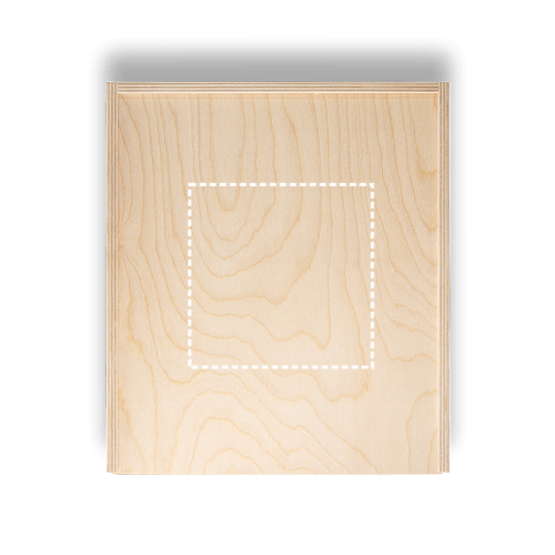 Kist van multiplex met schuifdeksel van acryl. Maat L. Vanwege het natuurlijke materiaal kunnen de kleur van het product en het drukresultaat per product afwijken. Binnenkant: 329 x 290 x 96 mm | Externe: 348 x 309 x 110 mm