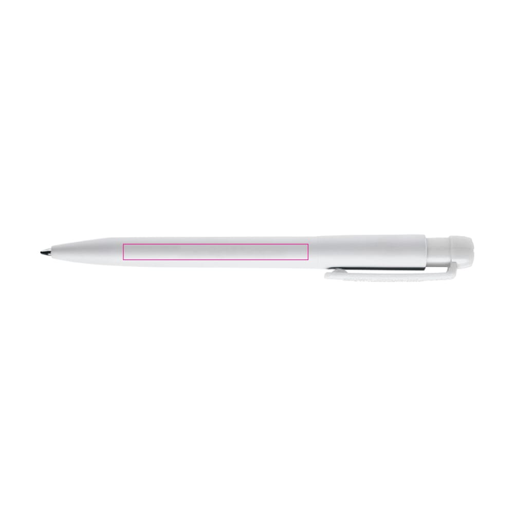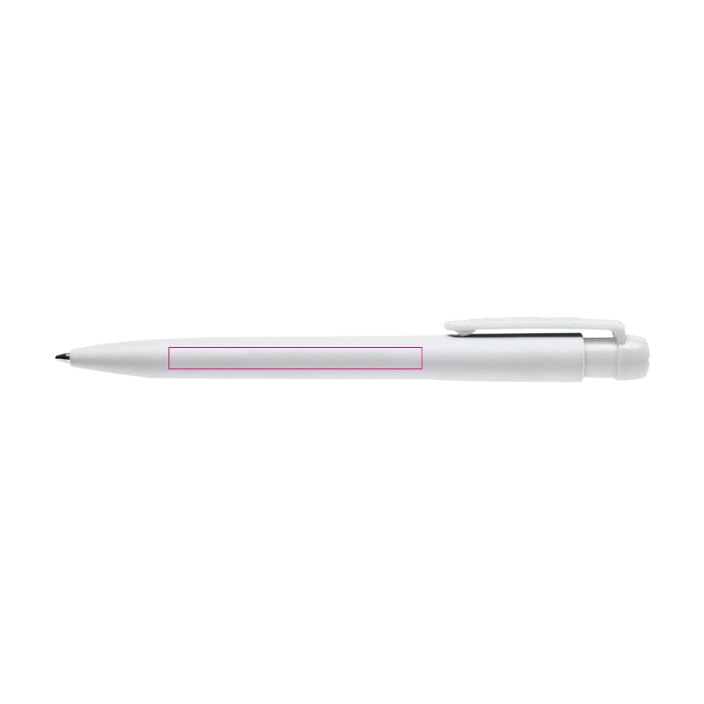 Hardcolour witte Ingeo TM balpen met gekleurde clip. Gemaakt van PLA kunststof, wat een biologisch afbreekbaar materiaal is. Dit betekend dat de pen een goede en duurzame keuze is als promotioneel artikel. De pen bevat een X20 vulling met blauw schrijvende inkt. Het heeft een drukmechaniek en is geproduceerd in Europa. Kleur combinaties voor deze pen zijn mogelijk vanaf 5.000 stuks.