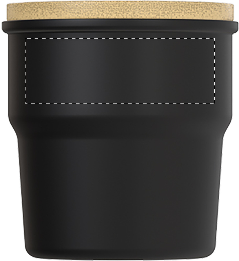 Hoge kwaliteit keramische beker met bamboe deksel. Met matte buitenkant en glanzende binnenkant. 240 ml. In kraftpapieren doos.