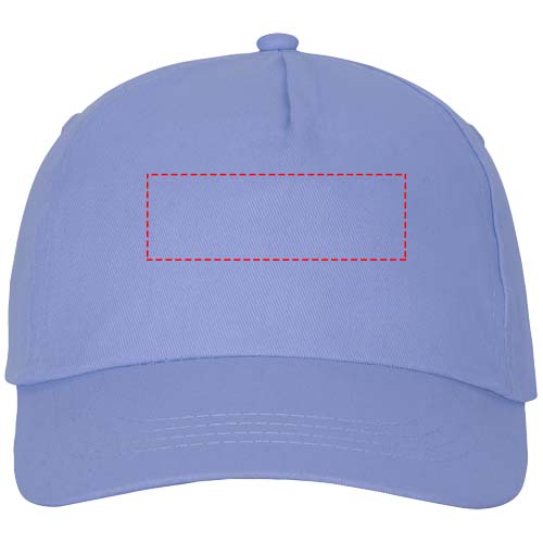 De Feniks 5-panelen pet heeft geborduurde oogjes voor verbeterde ventilatie, zodat je koel en fris blijft tijdens elke activiteit. Met een hoofdomtrek van 58 cm biedt hij een comfortabele pasvorm voor verschillende hoofdmaten. De stoffen klittenbandsluiting kan moeiteloos worden versteld voor de perfecte pasvorm. De Feniks pet is gemaakt van 175 g/m² katoenen keperstof en combineert duurzaamheid met een zacht, ademend gevoel.