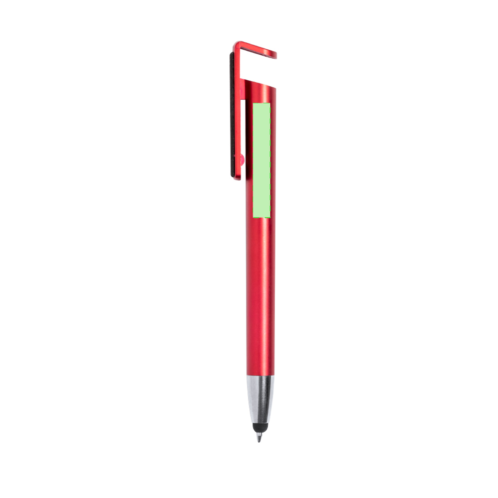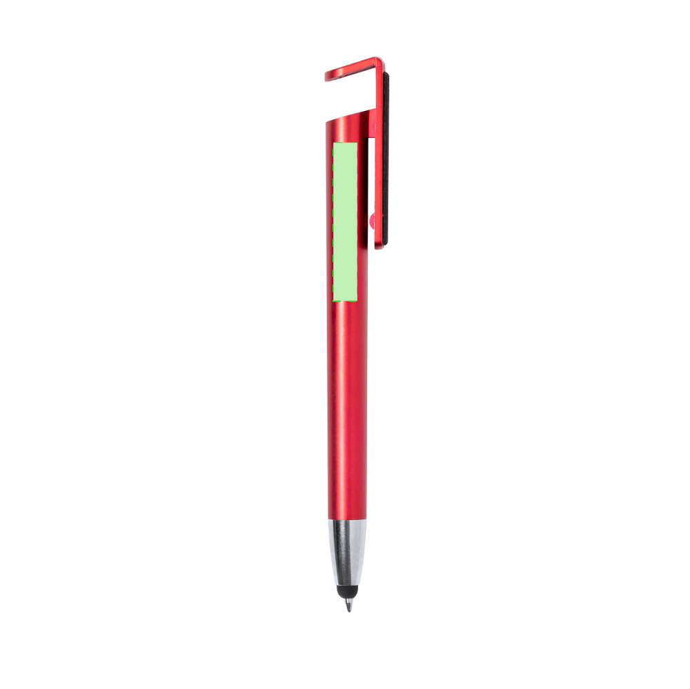 Multifunctionele stylus balpen met push-up-mechanisme in felle kleuren en clip met dubbele functie, speciaal ontworpen om te functioneren als houder voor mobiele apparaten en ook als schermreiniger. Met body in metallic afwerking, speciaal ontworpen voor tampondruk. Zwarte inkt.