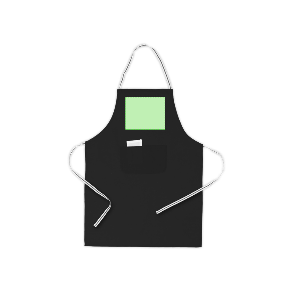 Hoogwaardig schort van TC-materiaal - combinatie katoen en polyester-. In verschillende kleuren, met dubbel voorzak en tweekleurige verstelbare banden. Valt boven de knie.
