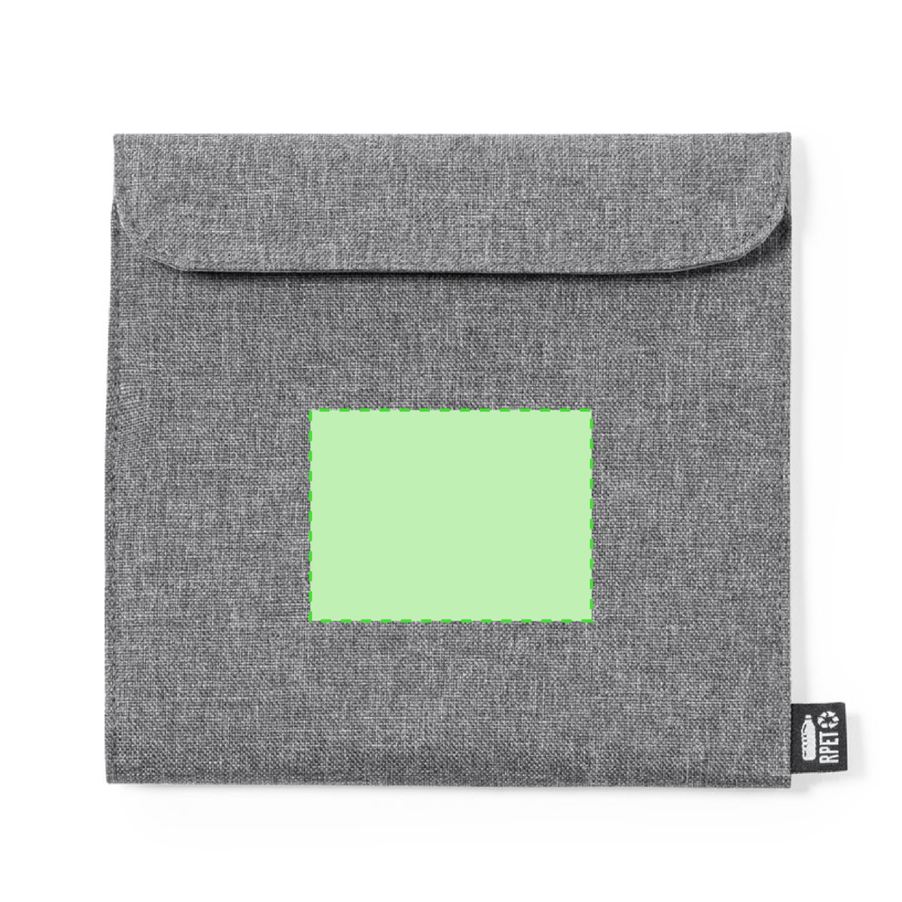 Nature line thermische snackhouder. Buitenkant gemaakt van resistent 600 RPET gemaakt van gerecycled plastic, om het hergebruik van plastic afval te bevorderen en de duurzaamheid van de planeet te helpen. Isotherme binnenkant in PEVA, met klittenbandsluiting en buitenlabel met RPET-logo.